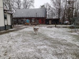 I söndags var det dags igen med lite snöfall. Inte mycket som synes men vovvarna fick en kortvarig vinterkänsla :-).